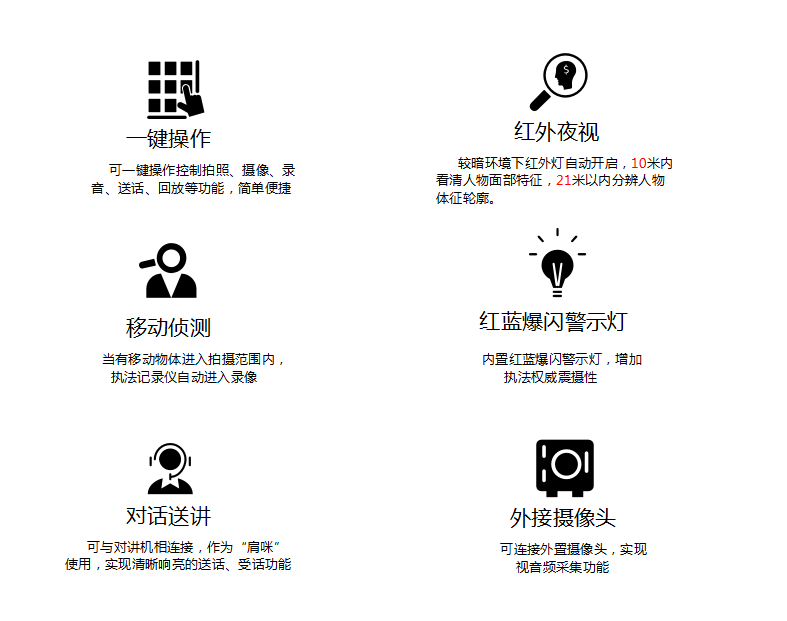1929cc威尼·斯官网DSJ-200F 执法仪(法院/政府/城管)拍摄像素高达5000万,广角镜头137,拍摄画面精细而全面,大容量电池支持陆续在工作12小时不断电